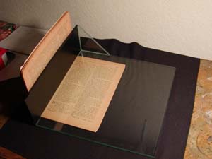 main part of this setup is a glass "book opener/holder." I